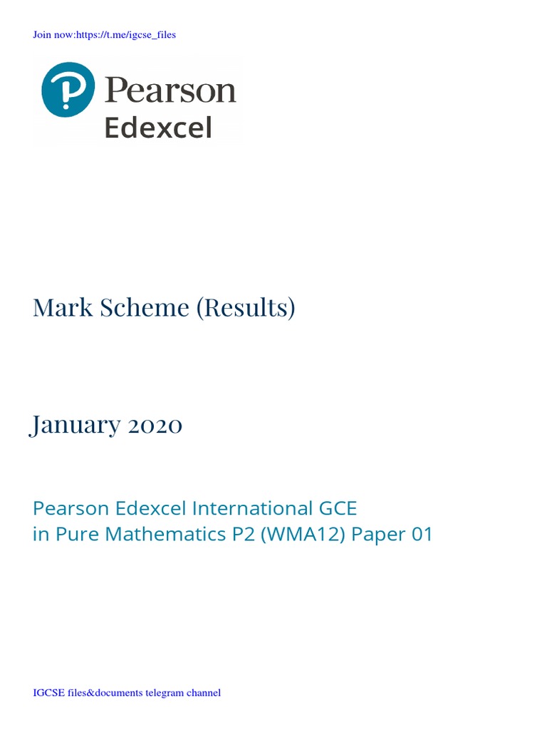 Ial Edexcel Pure Maths 2 Jan 20 Mark Scheme Quadratic Equation Mathematical Objects
